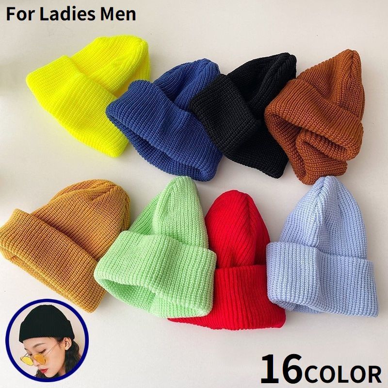 男女兼用フリ シンプル 無地 秋冬 保温 暖かい 防寒 浅め ビーニー リブニット 帽子 レディース ワッチキャップ ニット帽 メンズ