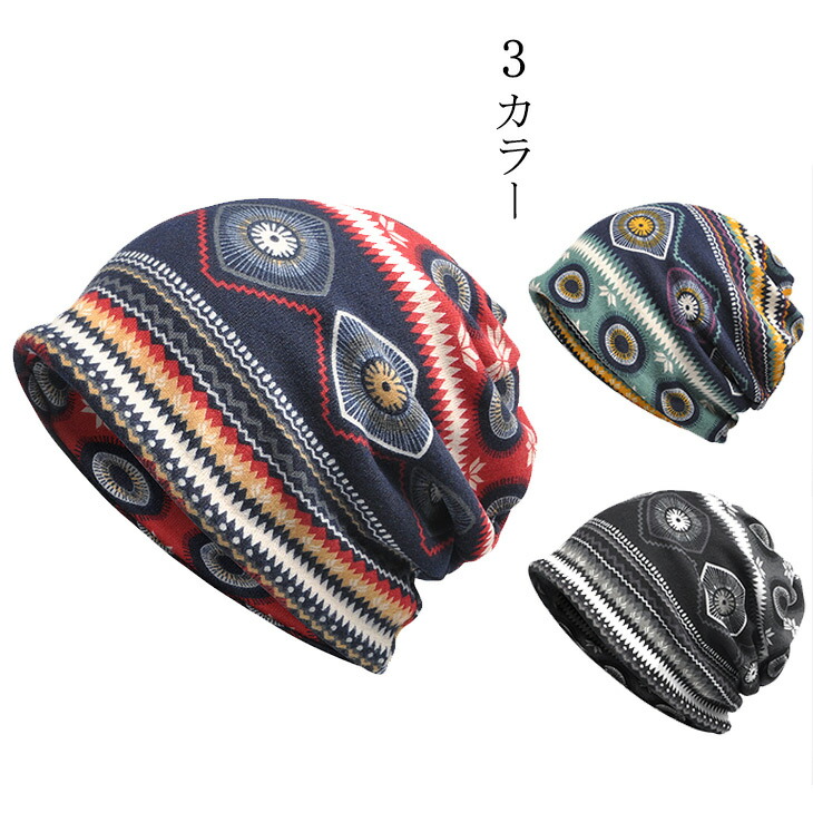 3カラー エスニック幾何柄ターバン ヘアバンド ヘッドバンド 帽子 幾何柄 ネックウォーマー ワッチ おしゃれ ニット帽 3way 秋冬 紫外線対策 UVカット マフラー スヌード レディー 男女兼用