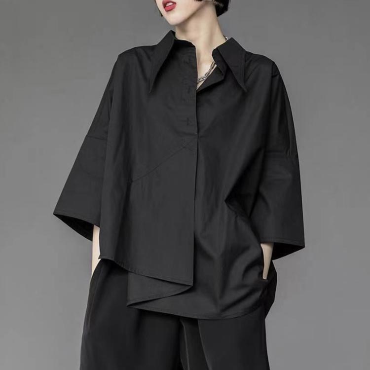 大きいサイズ トップス オーバサイズ 七分袖 春 シャツ ビッグシャツ 夏 原宿系 レディース 白 不規則 黒 ユニセックス オフィス カジュアル アシンメトリー モード系 メンズ 個性的 韓
