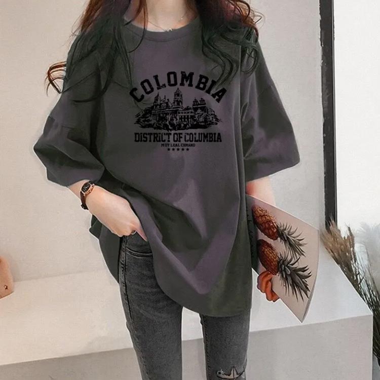 半袖Tシャツ 夏 レディース Tシャツ 半袖 夏Tシャツ ゆったり プリントTシャツ ラウンドネック 体型カバー ビッグシルエット 可愛い 個性的 無地 柔らかい 快適 カジュアル ファッシ