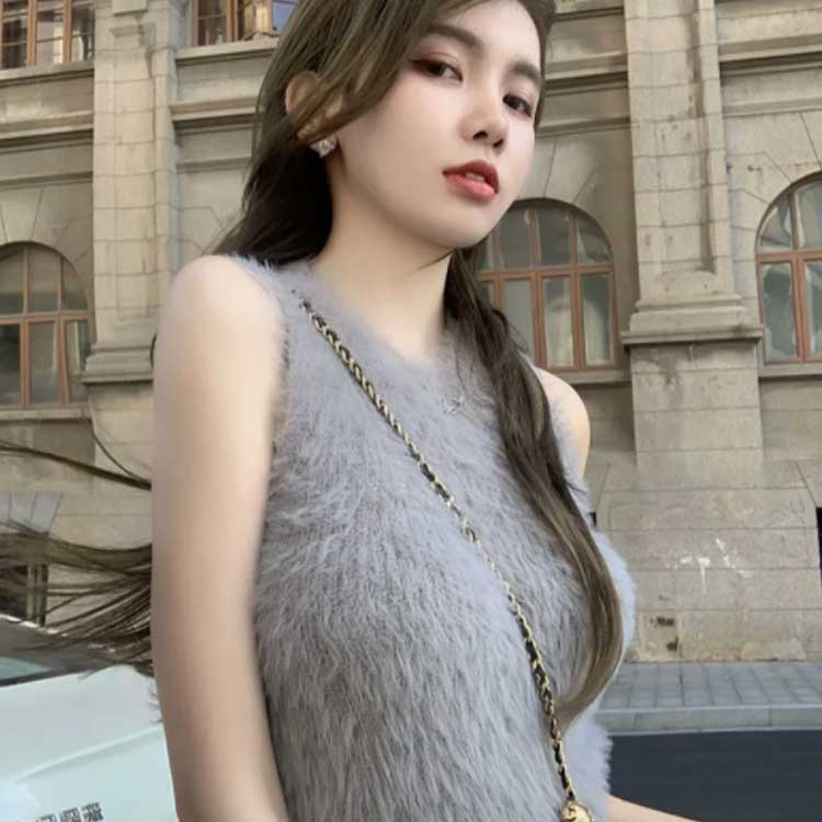 もこもこ キャミソール レディース トップス ノースリーブ フェイクファー 重ね着 可愛い おしゃれ モコモコ タンクトップ ふわふわ インナー レイヤード へそ出し 袖なし カットソー ダンス衣装