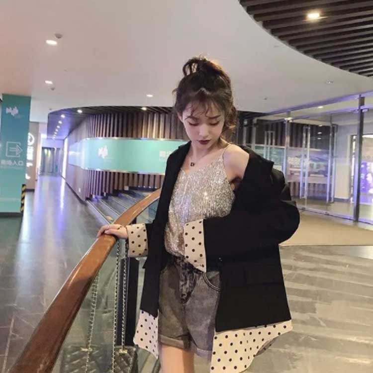 ドット柄 長袖シャツ ニットトップス 丸首 トップス ニット 切り替え 水玉 可愛い ゆったり 春服 春物 20代 30代