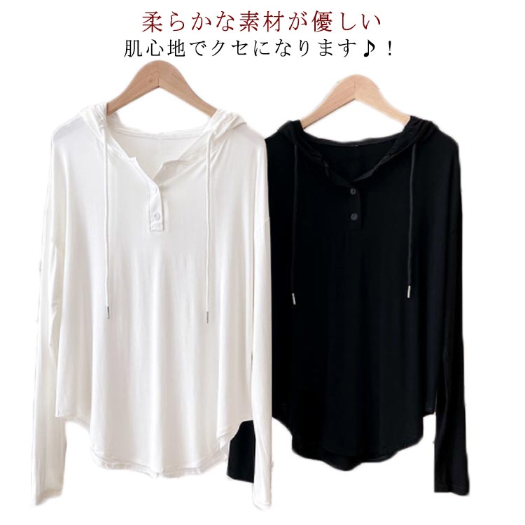 パーカー レディース 長袖シャツ フード付き シャツ ネック カットソー プルオーバー ゆったり 春 夏 秋 冬