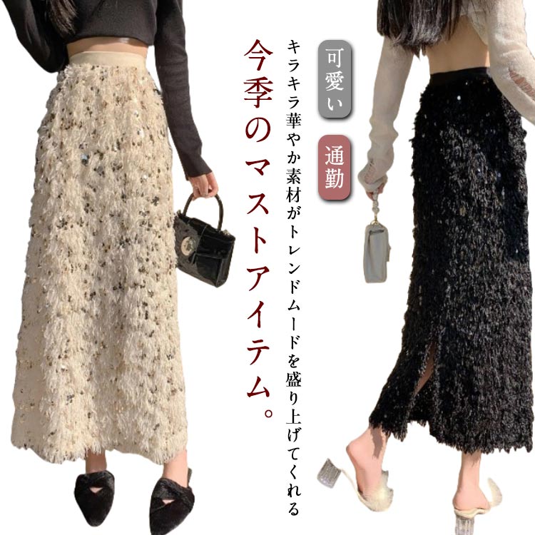 フリンジ タイトスカート ボトムス レディース スカート ロング 秋冬 もこもこ 可愛い