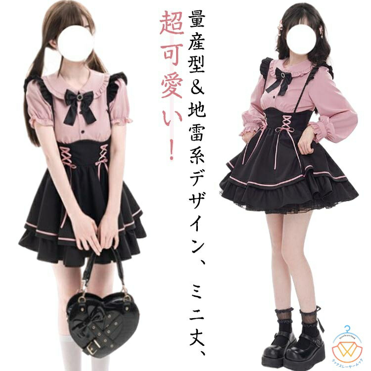 ライン 量産型 病みかわいい レースアップ 地雷系 スカート 2点セット セットアップ ファッション 参戦服 レース フリル ミニスカート ハイウエスト 服 フレア