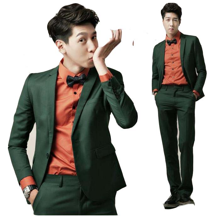 メンズ用カラースーツジャケットパンツ コートズボン テーラードジャケットスリム一つボタン舞台ステージ演出服歌手カラオケ衣装結婚式パーティースーツ舞台コスプレジャケット~5