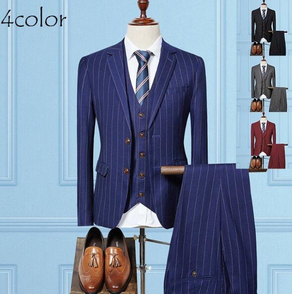 即納!在庫処分 送料無料!3ピーススーツ メンズ ビジネススーツ メンズ ベスト ジレ スーツジャケット ストライプ柄 スリム フォーマル シンプル 結婚式 パーティー 通勤 返品不可