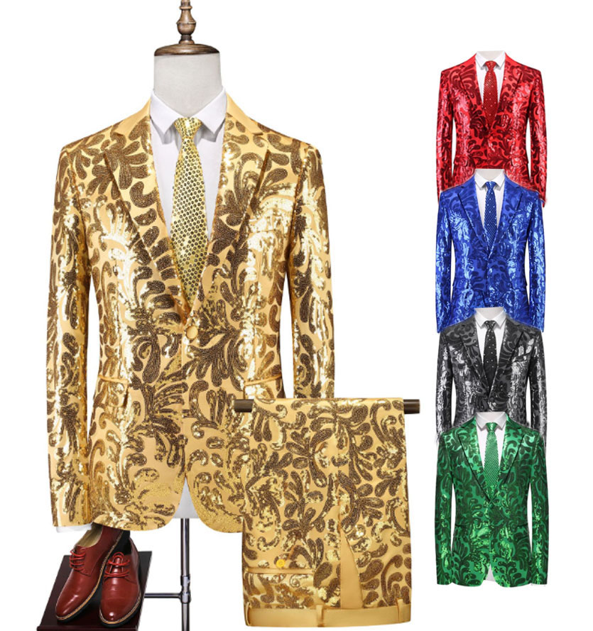 メンズ ステージ衣装 スパンコール スーツ 花柄 カラー キラキラ 男性用 礼服 舞台 ダンス 衣装 結婚式 二次会 パーティー 発表会 忘年会 合唱 カラオケ 演奏会