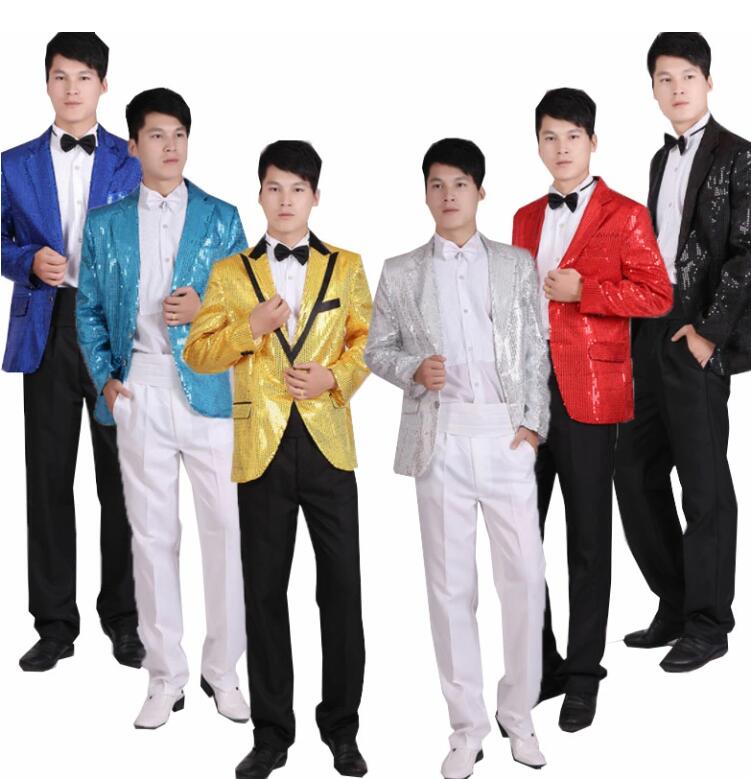 メンズスパンコールジャケット/演出司会衣装/イベントダンス衣装/スパンコールキラキラ舞台ステージ衣装/ホスト結婚式花婿公演服団体服発表会演奏会/パンツスーツ二点セット 単品対応可