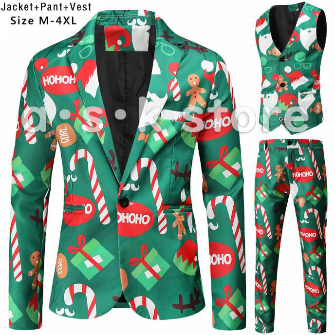 メンズ クリスマス 舞台衣裳 クリスマススーツ メンズ 総柄スーツ クリスマスパーティー衣装 演出服 ジレベスト コート パンツ サンタクロース シンガー カラオケ 魔術師 演出服 緑スーツ