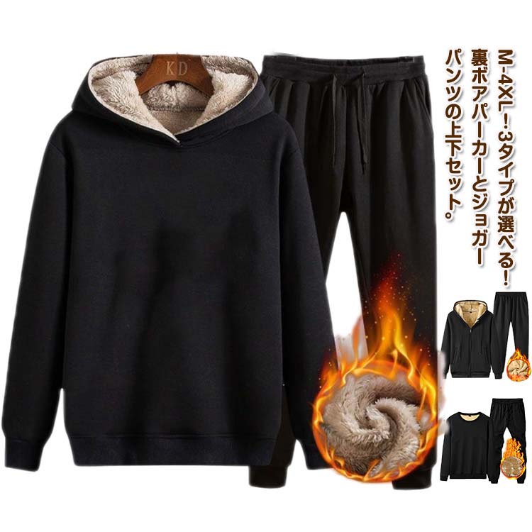 3タイプ ジップアップ プルオーバー パーカー ジャージ セット メンズ 裏ボア 極暖 あったか 無地 ルームウエア 部屋着 秋 冬 カジュアル 大きいサイズ 黒 ブラック