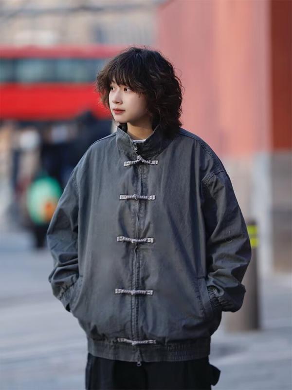 ジャケット メンズ レディース 中華風 スタンドカラー 無地 チャイナボタン 長袖 ゆったりサイズ ダークグレー ライトグレー トップス