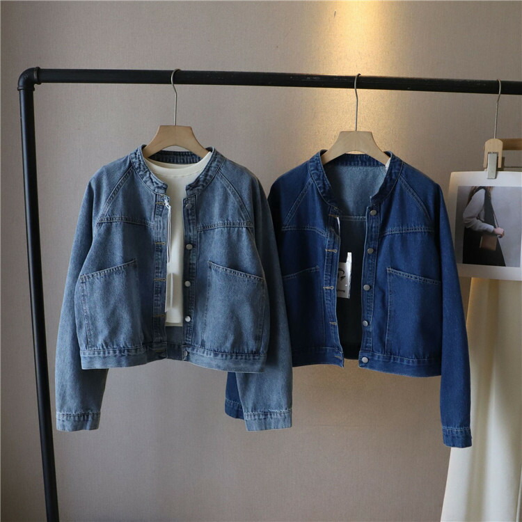 Gジャン ジャケット レディース 秋 トップス デニムジャケット デニム ノーカラー おしゃれ ショート丈 アウター コート 長袖 春 春服 秋物 シンプル カジュアル 通勤 大人 ファッション