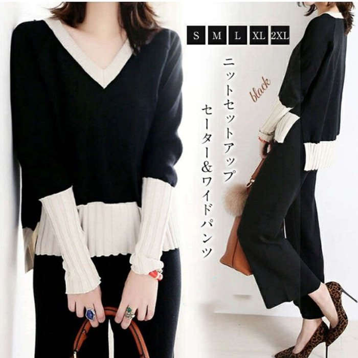 ニット セーター セットアップ レディース 秋冬 ワイドパンツ ニットセットアップ 部屋着 カジュアル ゆったり ニットセット 長袖 vネック オシャレ