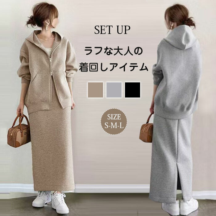 スカートセットアップ パーカーセットアップ 長袖 2点セット ロングスカート セットアップ レディース スカートスーツ 春秋 ロング丈 ハイウエスト ママスーツ おしゃれ ファッション カジュアル風