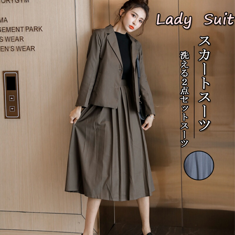 スカートスーツ レディース ママスーツ テーラードジャケット プリーツスカート セットアップ 上下セット 2点セット フォーマル リクルートスーツ 就活スーツ 卒業式 入学式 秋 無地 シンプル 春