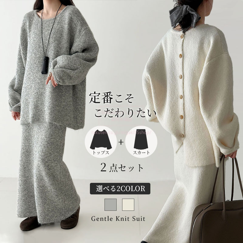 ニット セットアップ レディース バックボタンニットトップス &スカート セーター 上下セット 秋冬 体型カバー 着痩せ おしゃれ コーデ ふんわり 女性らしい キレイめ 上品 ゆったり