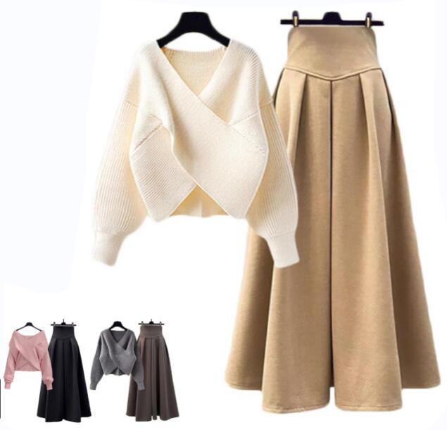 セットアップ レディース 上下2点セット ニット セーター プルオーバー ロングスカート フレアスカート 秋冬 韓国 きれいめ カジュアル ゆったり 体型カバー 痩見え あったか 防寒 長袖 おしゃれ