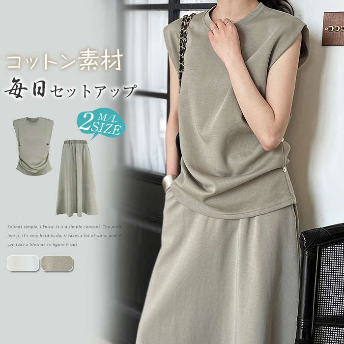 新色追加!! 今年夏の リラックスウェア スカートセットアップ コットン 綿 大きいサイズ 2点セット 上下セット 上下 ディリー お出かけ デート 旅行