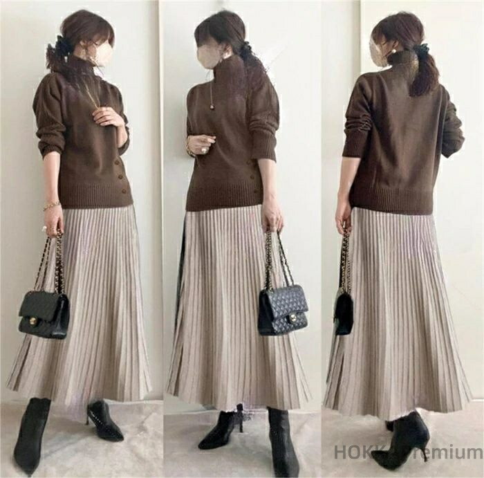 ニット 秋冬 セットアップ レディース カジュアル スカートセット ビッグカラー Aライン 2点セット 長袖 プリーツスカート スカートスーツ 無地 ニットセットアップ ロングスカート ゆっ セーター
