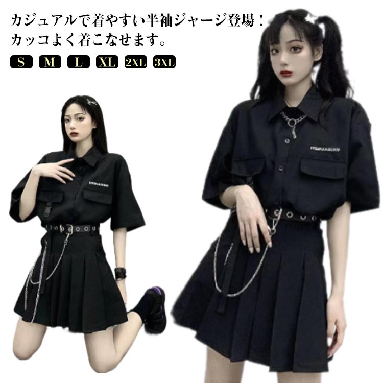 サブカル セットアップ レディース 上下セット 地雷系 ゆったり 夏服 半袖シャツ プリーツスカート ベルト カジュアル 韓国風 ストリート系 JK制服 原宿系 学院風 ダンス 女子 高校生 中 衣装