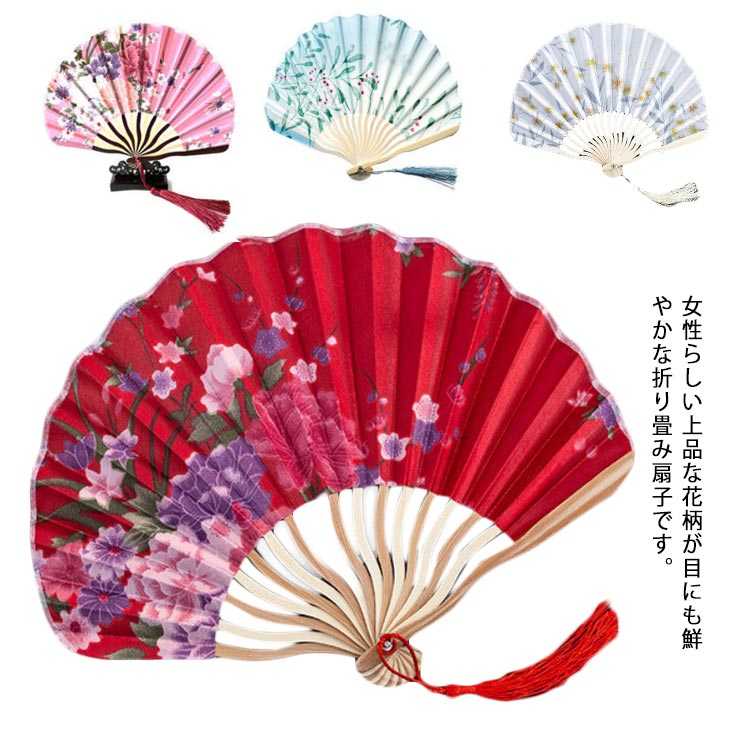 和風扇子 暑さ対策 花柄 折りたたみ 収納袋付き