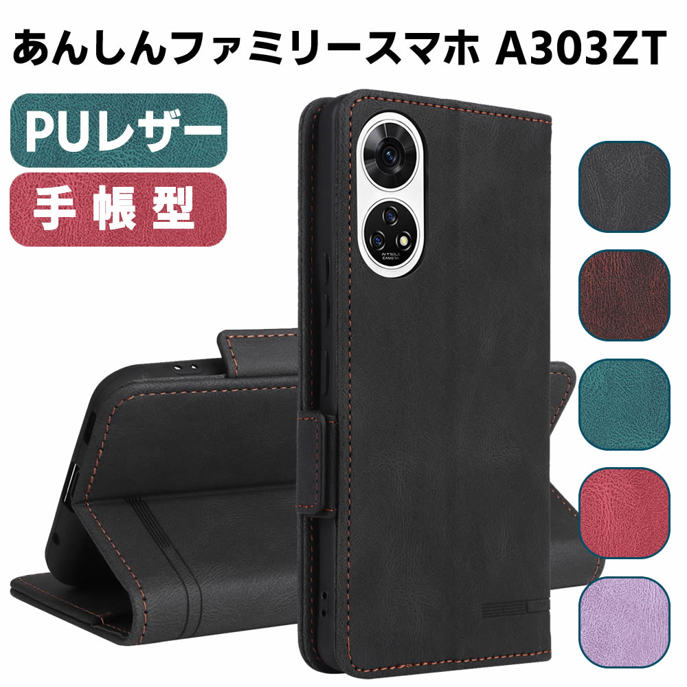 あんしんファミリースマホ A303ZTケース スマートフォンケース 手帳型ケース 二つ折りケース カバー マグネット 定期入れ ポケット シンプル TPUケース スタンド機能 携帯ケース スマホケース