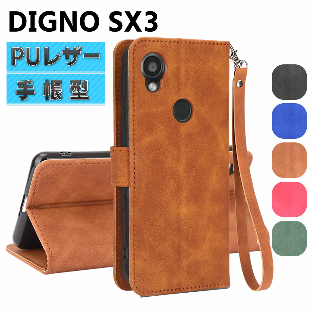 DIGNO SX3 KYG02 ケース スマートフォンケース 手帳型ケース ストラップ付 二つ折りケース カバー マグネット 定期入れ ポケット シンプル TPUケース スタンド機能 携 スマホケース