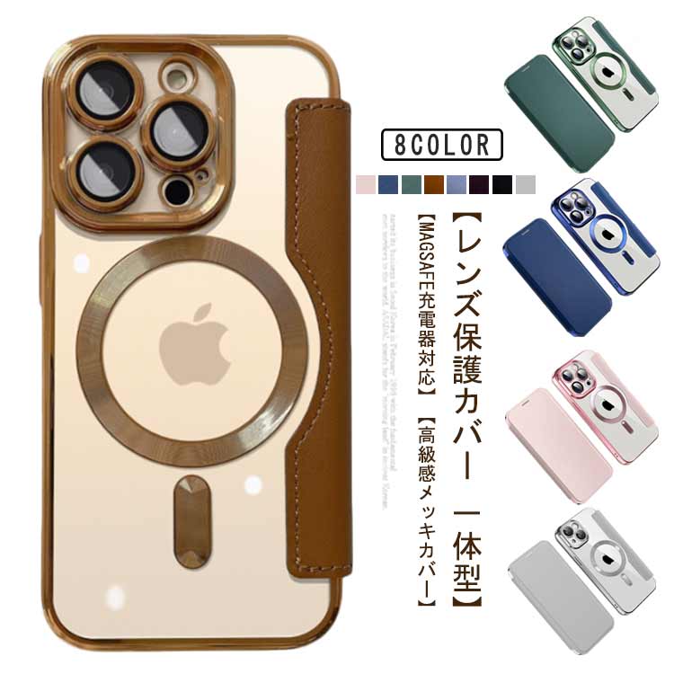 iPhone16 ケース 手帳型 magsafe ワイヤレス充電 カメラレンズ保護 背面クリア 透明 メッキ iPhone 16 Pro Max iphone15pro 14 13 マグセーフ