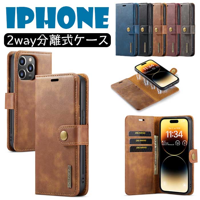 iPhone15 対応 ケース分離式 2in1手帳型 携帯カバー 取り外し自由 高 PUレザー+TPUソフト ケース 二合一の設計 落下防止 全面保護 iPhone14ケース iPhone 耐衝撃