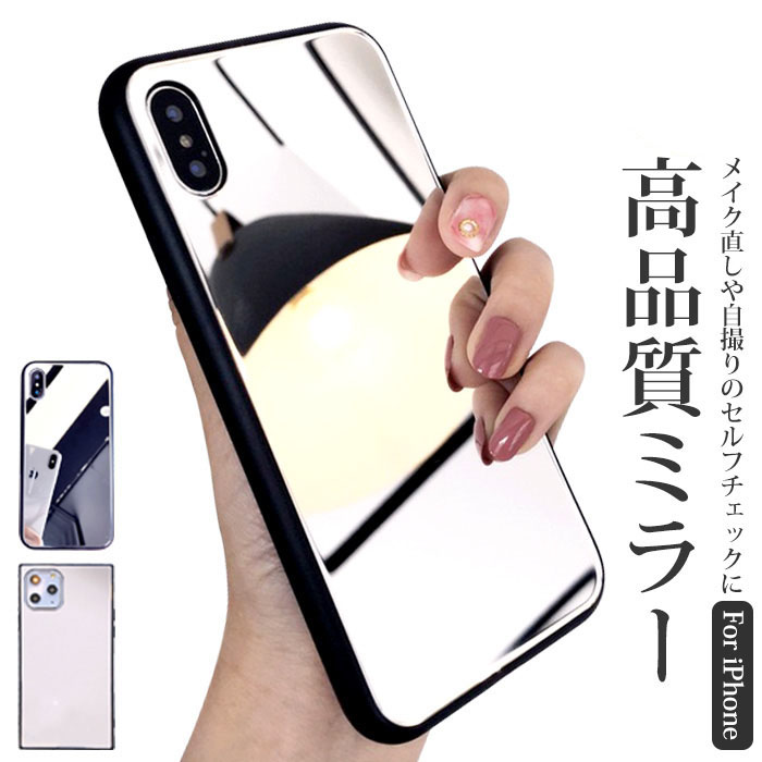 14 ケース ミラー オシャレ 可愛い 15 2 ガラス ハード シンプル ミラー付き アイフォンケース 鏡付き 12 14 スクエア