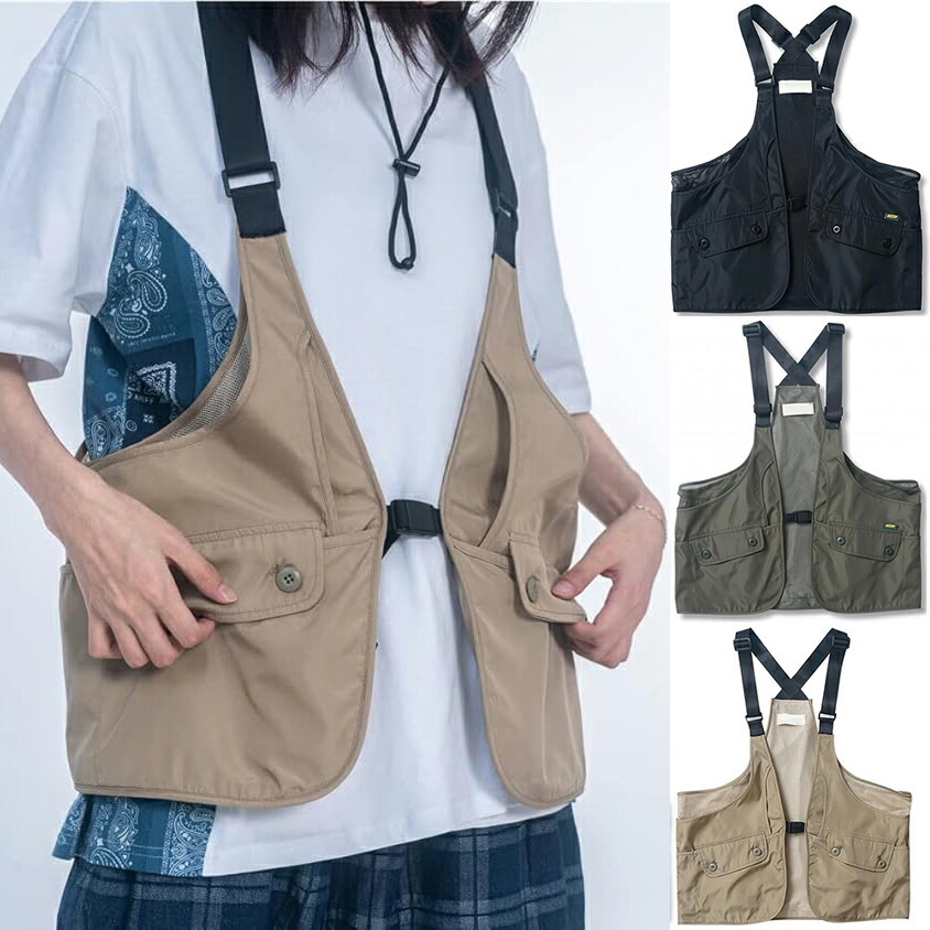 ポケット付き メッシュ アウトドアベスト 通気 釣り ~5