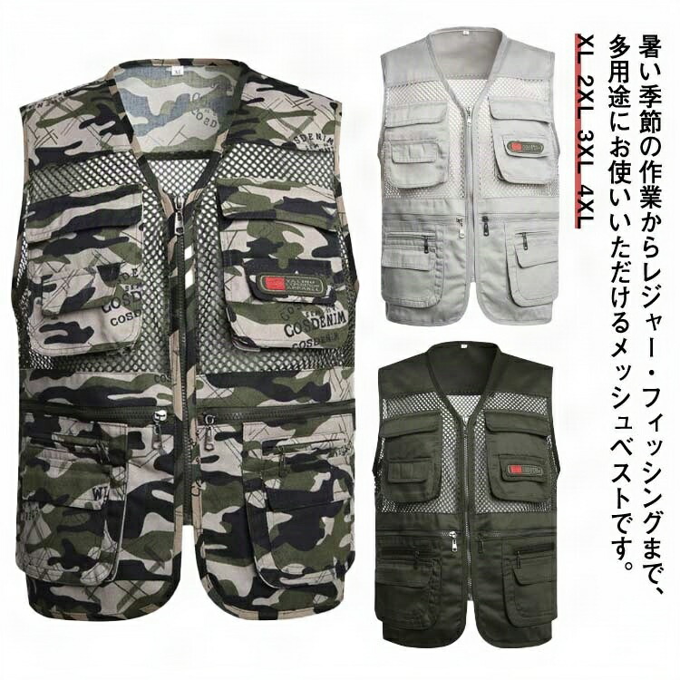 通気 お釣りベスト ベスト 作業用 夏用 メッシュベスト 夏 メンズ 作業服 大きいサイズ ポケット付 アウトドアベスト 農業 仕事 お釣り 登山 カメラマン 軽量 ウォーキング
