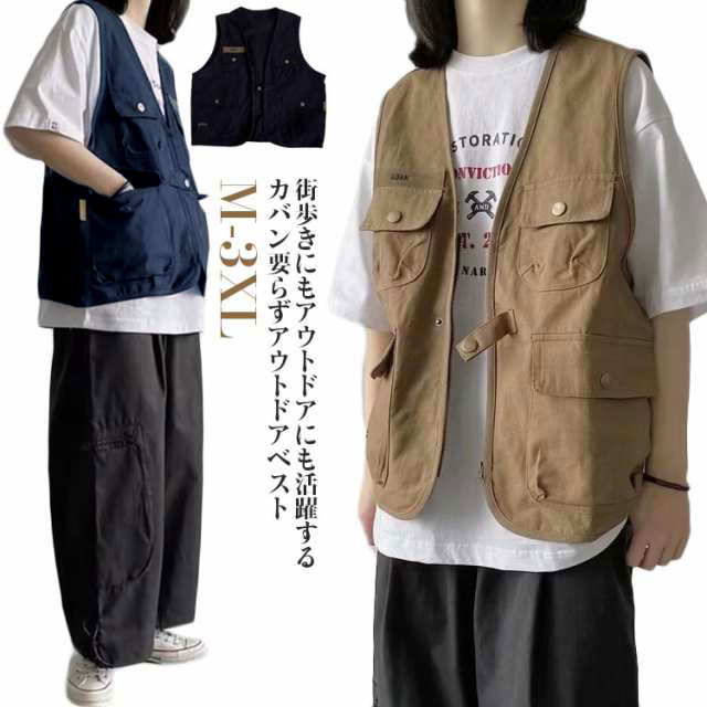 ベスト Vネック アウトドアベスト 多機能ベスト レイヤード ゆったり 重ね着 メンズ レディース ポケット多数 フィッシングベスト キャンプ 渓流 登山 修学 春 夏 秋 旅行
