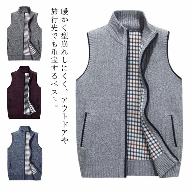 ニット メンズ 前開き ベスト 冬 メンズ アウトドア 裏ボア 裏起毛 ビジネス