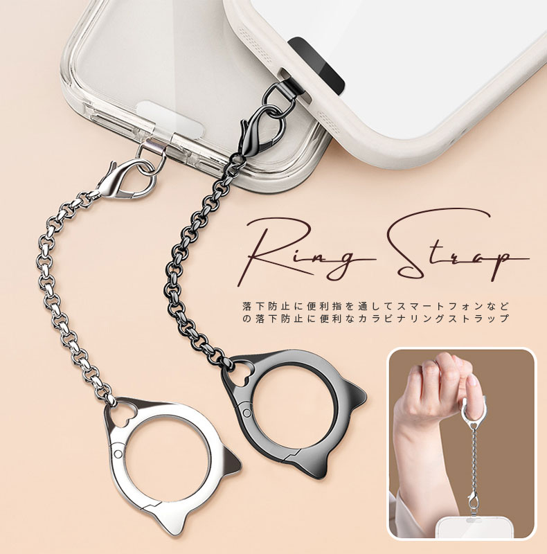 カラビナリングストラップ カラビナリング 携帯ストラップ 落下防止 リング リング ストラップ スマホ ホールド ねこ 耳 落下防止 フィンガー リング 落下防止 スマートフォン