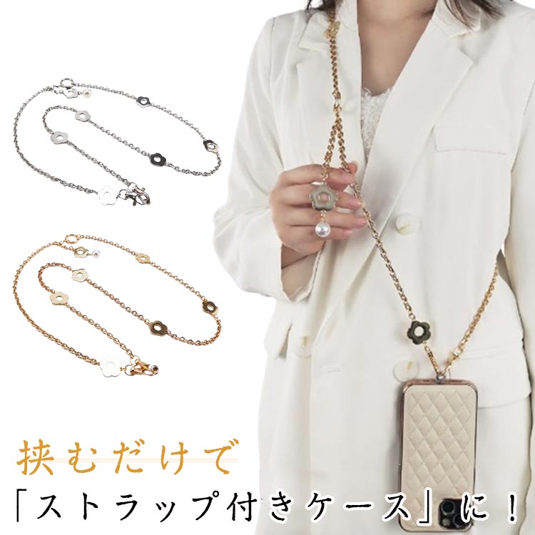 スマホチェーン ショルダー おしゃれ お花 スマホ用ストラップホルダー付き スマホストラップ パール メタル チェーンストラップ 肩掛け 斜め掛け 通勤 オフィス 手ぶら イベント