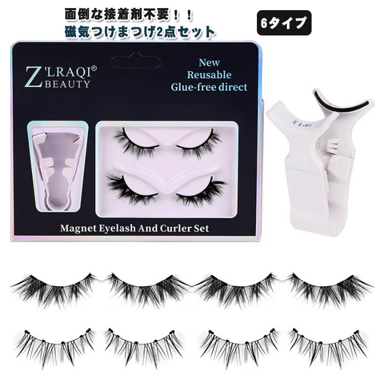つけまつ毛 磁気 2点セット 3Dつけまつげ 付け睫毛 6タイプ 磁気まつ毛 磁石まつげセット 磁石 接着剤なし マグネット つけまつげ クリップ付き 長持ち