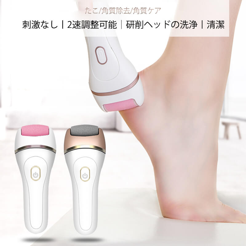 2速調整可能 スリムサイズ かかと削り 角質取り 磨き フットケア 安全 マイクロカッター 電動角質リムーバー 電池式足裏ケア 衛生