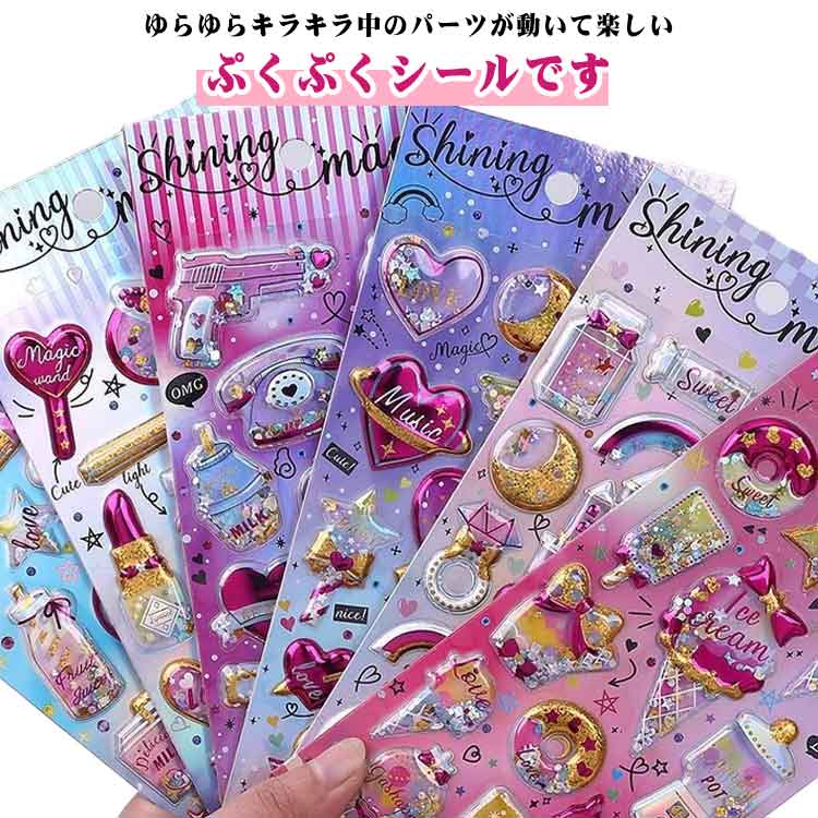 交換 ぷくぷくシール 原宿 デコシール シール 12枚セット 女の子 シール帳 コギャル 小学生 カプセルラメシール カラフル 派手 キラキラ SNS 立体シー ぷくぷく