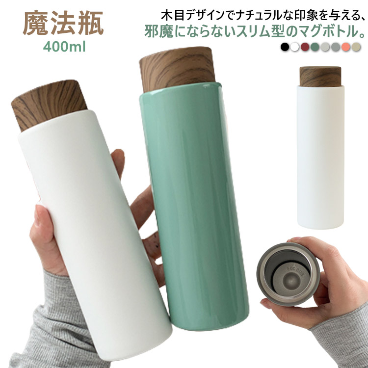 水筒 マグボトル 400ml スリム ステンレスボトル 保冷 保温 真空断熱 ボトル 直飲み 軽い 軽量 コンパクト 魔法瓶 シンプル おしゃれ 大人 子供 通勤 ランチ マイボトル ア 通学