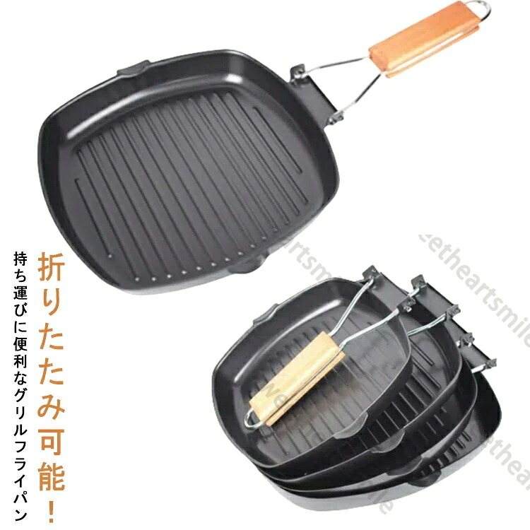 グリル フライパン 折り畳み式ハンドル IH対応 ガス火OK 直火対応 底面波状 焼き肉 ステーキ 魚焼き 20×20cm グリルフライパン 注ぎ口付き ハンドル 片手 フライ 折りたたみ