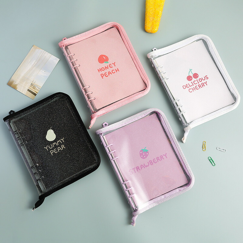手帳 リング付き ins a5a6バインダー ファスナー付き pvc シール帳 推し活グッズ オタ活グッズ はがせる コンパクト手帳 トレカ収納 推し シール収納 かわいい おしゃ リフィル10枚付き