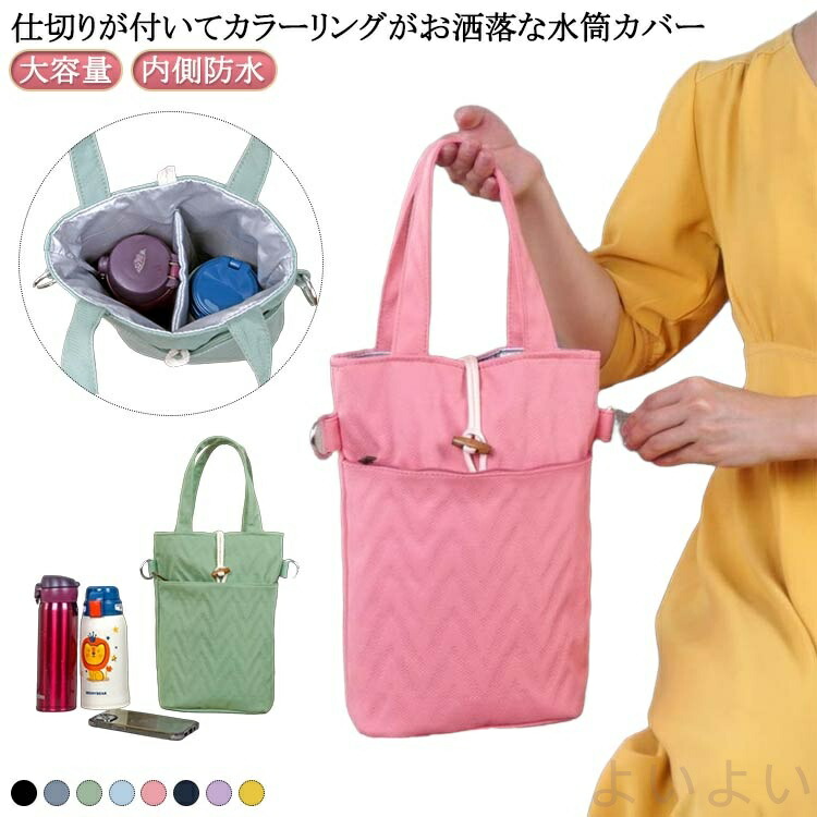 手提げ ペットボトルホルダー ペットボトルカバー 大容量 水筒ホルダー お洒落な水筒カバー 大きい水筒対応 内側防水 水筒カバー 2本入るサイズ
