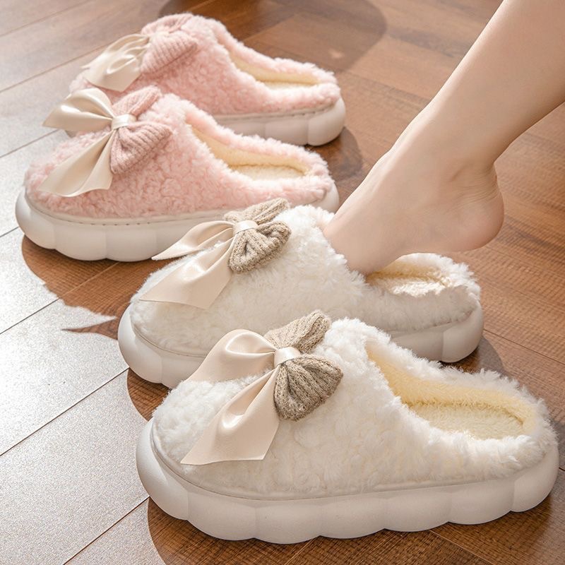 ルームシューズ ふわふわ スリッパ 厚底 レディース 蝶結び あったか もこもこ 暖かい 洗える 防寒 かわいい ファー 冬 可愛い 来客用 秋用 冬用 室内履き 春用