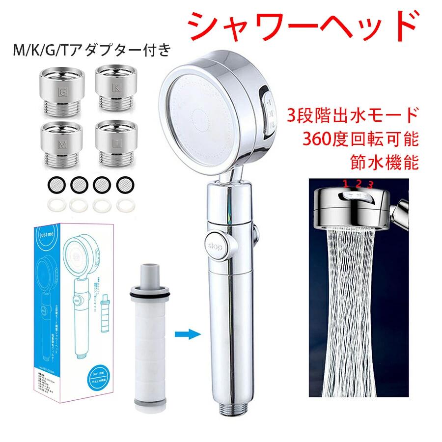 シャワーヘッド 節水 シャワー 手持ち式シャワー 塩素除去 増圧用しやわーヘッド高水 極細水流 水量調節 3段階モード 360°回転角度調節 手元止水 高洗浄力 肌ケア 軽量 お風呂 取付簡単 美髪
