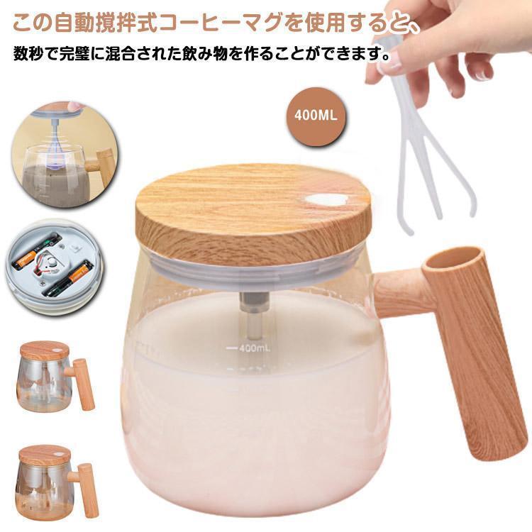 自動撹拌マグカップ マグネット 大容量 電動自旋マグ 自動撹拌 400ML ガラス製 自動ミキサーカップ 家庭用 漏れ防止 電池式 ハンドル付 蓋付き