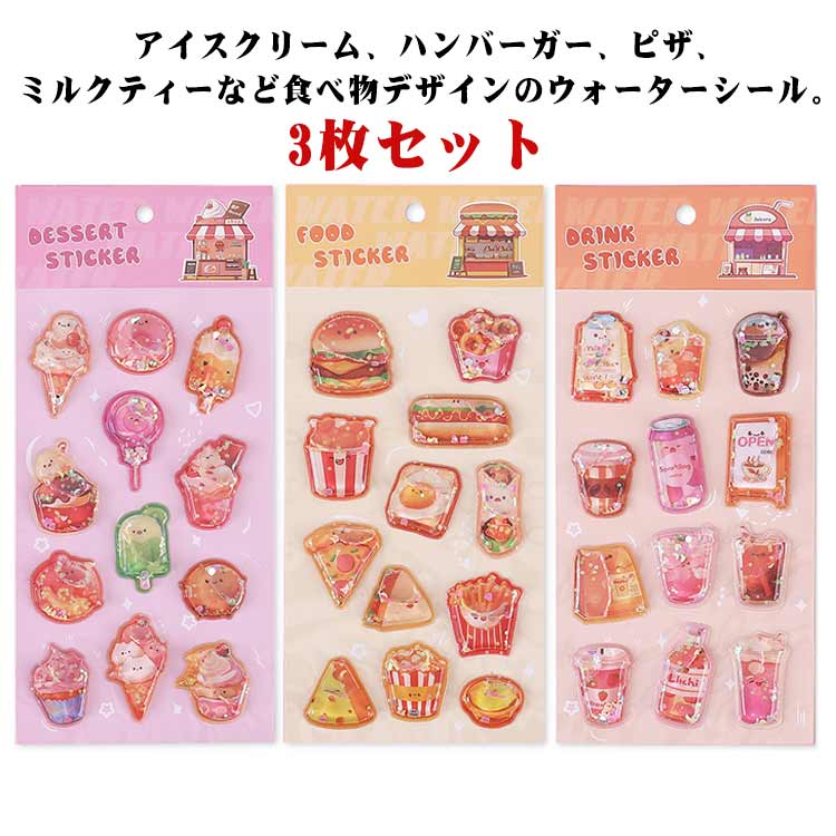 ウォーターシール 水入りシール 女の子 シャカシャカシール ご褒美シール ハンバーガー ピザ ミルクティー ドロップシール 3立体シール 水入り カプセルシール