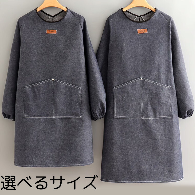 デニムメンズレディースお洒落な長袖エプロン割烹着防水撥水袖カバー腕カバー冬用エプロン冬あたたかいロングスモックロング丈暖かいあたたかいロング割烹着