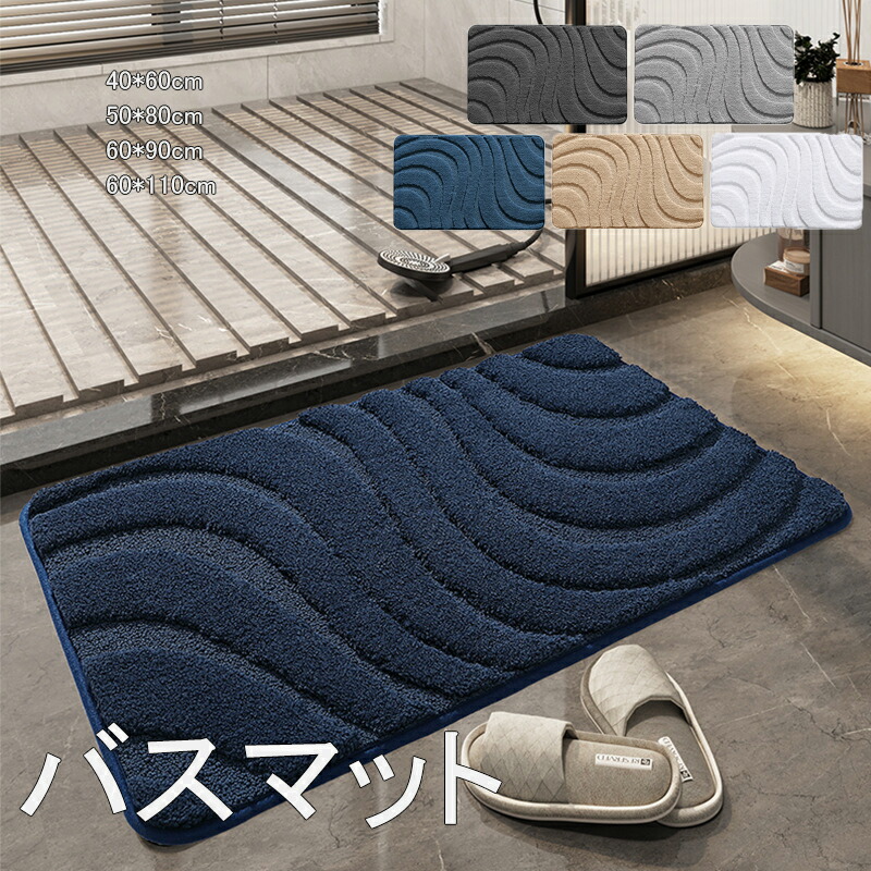 バスマット お風呂 マット 吸水速乾 浴室マット 足ふきマット トイレマット 玄関マット速乾 シンプル おしゃれ 新生活応援 40*60cm 50*8 ギフト